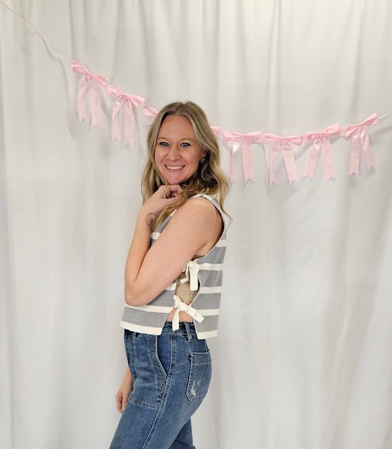 Grey Stripe Side Tie Top