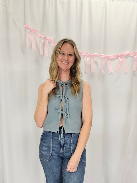Front Tie Shirt- Dusty Blue